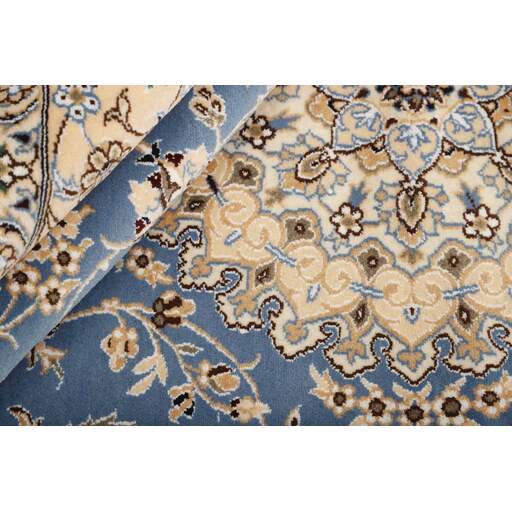 Naïn est une ville d'environ 50 000 habitants, située dans la province d'Ispahan. Elle a une importance historique, car c'était la dernière étape des routes caravanières avant Kavir-a-Lut, l'un des déserts qui s'étendent à travers le centre de l'Iran. La mosquée de Naïn est l'une des plus anciennes d'Iran et est bien mieux construite que les mosquées plus récentes et plus célèbres d'Ispahan. L'industrie de Naïn était traditionnellement axée sur la production de vêtements en laine, mais les tisserands se sont tournés vers la production de tapis lorsque la demande a chuté. Leurs nouveaux produits sont rapidement devenus célèbres, car les tisserands étaient qualifiés et utilisaient des matériaux de bonne qualité. La chaîne et la trame sont en coton, avec un velours en laine et des contours en soie. Parfois, la soie est davantage utilisée dans la base. Les couleurs sont raffinées ; des nuances d'ivoire et de crème, avec de petites zones de rouge, de vert et de bleu. Comme pour les tapis d'Ispahan, les motifs des tapis de Naïn sont également classiques. Les tapis Nain sont fabriqués dans toutes les tailles, y compris les très grands tapis allant jusqu'à 60 m², et certains d'entre eux ont un velours en soie pure. Le plus grand tapis Nain produit mesurait 20 mètres sur 20.