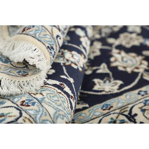 Naïn est une ville d'environ 50 000 habitants, située dans la province d'Ispahan. Elle a une importance historique, car c'était la dernière étape des routes caravanières avant Kavir-a-Lut, l'un des déserts qui s'étendent à travers le centre de l'Iran. La mosquée de Naïn est l'une des plus anciennes d'Iran et est bien mieux construite que les mosquées plus récentes et plus célèbres d'Ispahan. L'industrie de Naïn était traditionnellement axée sur la production de vêtements en laine, mais les tisserands se sont tournés vers la production de tapis lorsque la demande a chuté. Leurs nouveaux produits sont rapidement devenus célèbres, car les tisserands étaient qualifiés et utilisaient des matériaux de bonne qualité. La chaîne et la trame sont en coton, avec un velours en laine et des contours en soie. Parfois, la soie est davantage utilisée dans la base. Les couleurs sont raffinées ; des nuances d'ivoire et de crème, avec de petites zones de rouge, de vert et de bleu. Comme pour les tapis d'Ispahan, les motifs des tapis de Naïn sont également classiques. Les tapis Nain sont fabriqués dans toutes les tailles, y compris les très grands tapis allant jusqu'à 60 m², et certains d'entre eux ont un velours en soie pure. Le plus grand tapis Nain produit mesurait 20 mètres sur 20.