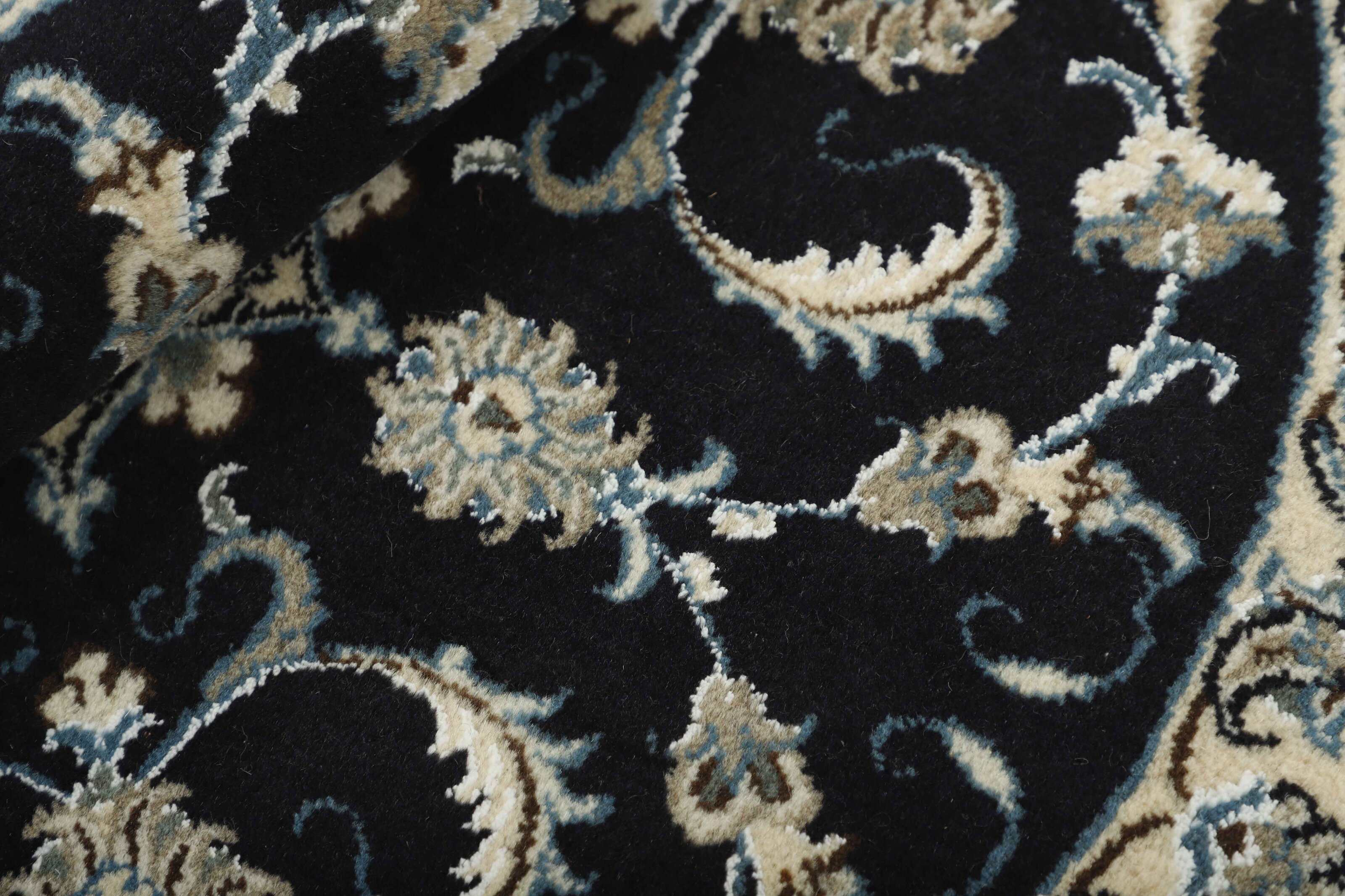 Naïn est une ville d'environ 50 000 habitants, située dans la province d'Ispahan. Elle a une importance historique, car c'était la dernière étape des routes caravanières avant Kavir-a-Lut, l'un des déserts qui s'étendent à travers le centre de l'Iran. La mosquée de Naïn est l'une des plus anciennes d'Iran et est bien mieux construite que les mosquées plus récentes et plus célèbres d'Ispahan. L'industrie de Naïn était traditionnellement axée sur la production de vêtements en laine, mais les tisserands se sont tournés vers la production de tapis lorsque la demande a chuté. Leurs nouveaux produits sont rapidement devenus célèbres, car les tisserands étaient qualifiés et utilisaient des matériaux de bonne qualité. La chaîne et la trame sont en coton, avec un velours en laine et des contours en soie. Parfois, la soie est davantage utilisée dans la base. Les couleurs sont raffinées ; des nuances d'ivoire et de crème, avec de petites zones de rouge, de vert et de bleu. Comme pour les tapis d'Ispahan, les motifs des tapis de Naïn sont également classiques. Les tapis Nain sont fabriqués dans toutes les tailles, y compris les très grands tapis allant jusqu'à 60 m², et certains d'entre eux ont un velours en soie pure. Le plus grand tapis Nain produit mesurait 20 mètres sur 20.