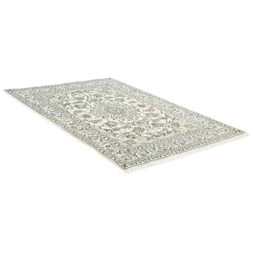 Naïn est une ville d'environ 50 000 habitants, située dans la province d'Ispahan. Elle a une importance historique, car c'était la dernière étape des routes caravanières avant Kavir-a-Lut, l'un des déserts qui s'étendent à travers le centre de l'Iran. La mosquée de Naïn est l'une des plus anciennes d'Iran et est bien mieux construite que les mosquées plus récentes et plus célèbres d'Ispahan. L'industrie de Naïn était traditionnellement axée sur la production de vêtements en laine, mais les tisserands se sont tournés vers la production de tapis lorsque la demande a chuté. Leurs nouveaux produits sont rapidement devenus célèbres, car les tisserands étaient qualifiés et utilisaient des matériaux de bonne qualité. La chaîne et la trame sont en coton, avec un velours en laine et des contours en soie. Parfois, la soie est davantage utilisée dans la base. Les couleurs sont raffinées ; des nuances d'ivoire et de crème, avec de petites zones de rouge, de vert et de bleu. Comme pour les tapis d'Ispahan, les motifs des tapis de Naïn sont également classiques. Les tapis Nain sont fabriqués dans toutes les tailles, y compris les très grands tapis allant jusqu'à 60 m², et certains d'entre eux ont un velours en soie pure. Le plus grand tapis Nain produit mesurait 20 mètres sur 20.