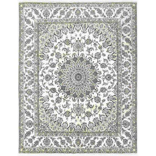 Naïn est une ville d'environ 50 000 habitants, située dans la province d'Ispahan. Elle a une importance historique, car c'était la dernière étape des routes caravanières avant Kavir-a-Lut, l'un des déserts qui s'étendent à travers le centre de l'Iran. La mosquée de Naïn est l'une des plus anciennes d'Iran et est bien mieux construite que les mosquées plus récentes et plus célèbres d'Ispahan. L'industrie de Naïn était traditionnellement axée sur la production de vêtements en laine, mais les tisserands se sont tournés vers la production de tapis lorsque la demande a chuté. Leurs nouveaux produits sont rapidement devenus célèbres, car les tisserands étaient qualifiés et utilisaient des matériaux de bonne qualité. La chaîne et la trame sont en coton, avec un velours en laine et des contours en soie. Parfois, la soie est davantage utilisée dans la base. Les couleurs sont raffinées ; des nuances d'ivoire et de crème, avec de petites zones de rouge, de vert et de bleu. Comme pour les tapis d'Ispahan, les motifs des tapis de Naïn sont également classiques. Les tapis Nain sont fabriqués dans toutes les tailles, y compris les très grands tapis allant jusqu'à 60 m², et certains d'entre eux ont un velours en soie pure. Le plus grand tapis Nain produit mesurait 20 mètres sur 20.