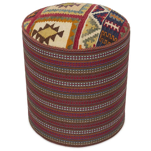 Les poufs sont fabriqués dans le sud de la Perse. Ils sont fabriqués à partir de tapis Kelim qui ont entre 20 et 50 ans. Les tapis Kelim utilisés pour les poufs sont tissés à la main avec une technique de tissage spéciale, qui donne aux tapis une qualité plus fine, semblable à celle du feutre. Des poufs ronds et carrés sont disponibles et sont entièrement uniques. Les poufs sont colorés naturellement.
