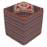 Les poufs sont fabriqués dans le sud de la Perse. Ils sont fabriqués à partir de tapis Kelim qui ont entre 20 et 50 ans. Les tapis Kelim utilisés pour les poufs sont tissés à la main avec une technique de tissage spéciale, qui donne aux tapis une qualité plus fine, semblable à celle du feutre. Des poufs ronds et carrés sont disponibles et sont entièrement uniques. Les poufs sont colorés naturellement.