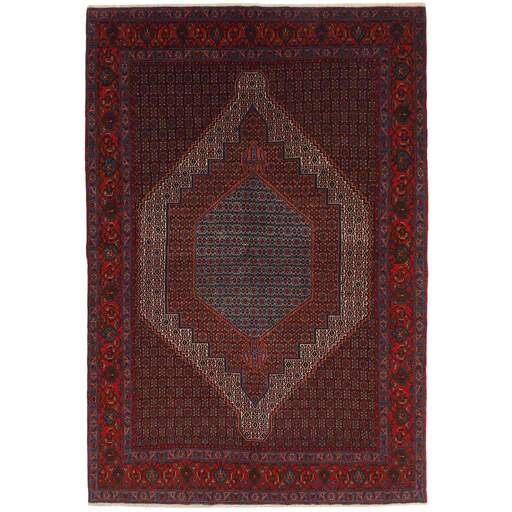 Seneh, dans le Sanadaj, est la capitale de la province du Kurdistan, au nord-ouest de l'Iran. Elle compte environ 300 000 habitants, la plupart étant des Kurdes de la tribu Gurani. Les tapis Seneh sont facilement reconnaissables à leur méthode de nouage, ainsi qu'aux couleurs des motifs et à la laine utilisée. Ils ont généralement une trame simple et le dos des tapis est souvent grossier et granuleux, car la laine est filée à la main avant le nouage. Parfois, on peut voir un nouage ferme de type Bidjar. Les couleurs caractéristiques sont le bleu profond, le vert, le rouge foncé et le blanc. La laine Seneh est l'une des meilleures qualités de laine en Iran : ferme et durable, avec un éclat profond, résultat de la haute altitude, de la végétation clairsemée et des températures extrêmes. Les noueurs tribaux de la région utilisent le même type de laine. Au 19e siècle, les tapis Seneh étaient célèbres pour leur finesse et la variété de leurs motifs, tandis que la production moderne est moins fine et moins variée. Le nœud Ghiordis est généralement utilisé, mais vous trouverez également des tapis de Seneh avec le nœud Seneh. Le tapis Seneh typique présente un champ à motifs Herati, avec une série de médaillons géométriques, les uns dans les autres, chacun répétant le motif avec une couleur de fond différente. Parfois, on retrouve des motifs plus anciens et plus uniformes : Boteh, Vekili, Gol-Farang (bouquets de fleurs naturalistes de style européen) ou Gol-i-Bulbul (oiseaux et fleurs).