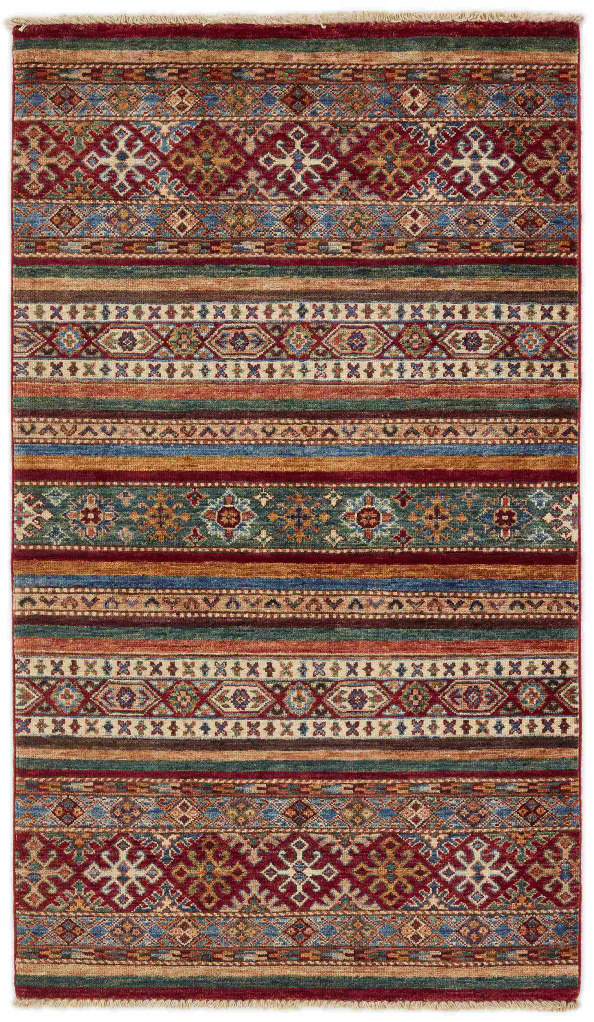 Les tapis de la collection Shall sont noués à la main par des Turkmènes dans le nord de l'Afghanistan. Ils sont fabriqués à 100 % en laine, noués avec la laine la plus fine des moutons des hautes terres. Les tapis sont très résistants et sont, en termes de qualité, les meilleurs tapis afghans disponibles.