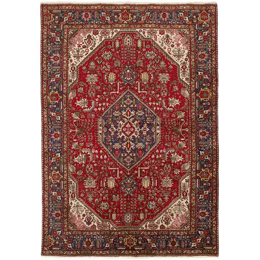 Tabriz est l'une des villes les plus importantes d'Iran. Elle compte 1,5 million d'habitants et est la capitale de la province de l'Azerbaïdjan oriental. Étant l'une des plus grandes régions productrices de tapis de Perse, les tapis de Tabriz sont exportés dans toutes les qualités, du plus simple au plus luxueux. Les meilleures qualités sont divisées en deux catégories principales : le Tabriz Mahi, également connu sous le nom de « motif de poisson de Tabriz » (le motif en forme de feuille du tapis est appelé Mahi, ce qui signifie « poisson »), et le Tabriz Nagsheh, qui signifie motif. Dans ce contexte, il fait référence aux motifs et symboles figuratifs de Keshan et d'Ispahan, qui ont inspiré le tapis Tabriz Nagsheh. Les noueurs sont incroyablement habiles et ils ont inventé un type spécial de crochet, qu'ils peuvent utiliser à la place de leurs doigts pour nouer les nœuds. La chaîne et la trame sont en coton, et le velours est en laine, souvent avec de la soie tissée dans les qualités les plus fines. Les couleurs des meilleurs tapis sont fines et raffinées. Les qualités les plus brutes ont des couleurs vives et sont rarement exportées. Les tapis de Tabriz sont souvent numérotés, comme Tabriz 50, ce qui est une indication de qualité. Le Tabriz 50 a 500 000 nœuds par m2. Les tapis de Tabriz sont considérés comme étant durables et de très haute qualité.