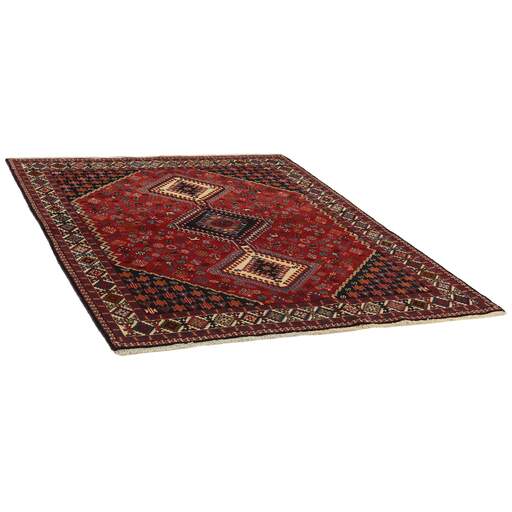 Les tapis colorés du sud de l'Iran ont été appelés Yalameh et sont principalement fabriqués dans et autour du village d'Aliabad dans la province du Fars. Les tapis de cette origine étaient autrefois appelés Shekarlu, mais ils étaient très rares. Ils étaient traditionnellement plus colorés que les autres tapis du sud de l'Iran, dont les couleurs se limitaient au rouge et au bleu foncé. Ces dernières années, l'offre de Shekarlu a été limitée, mais un nouveau type de tapis est arrivé sur le marché dans les années 60 et 70 : les Yalameh. Ils étaient tout aussi colorés que les tapis Shekarlu, mais avec une plus forte emphase sur le bleu. Le nouage et les motifs sont généralement plus uniformes que ceux des tapis Shekarlu. Ils partagent de nombreuses caractéristiques avec les tapis tribaux : ils sont 100 % laine, et les couleurs vives et les motifs géométriques sont abondamment utilisés. Bien que la laine soit particulièrement douce et brillante, elle est filée à la machine et les couleurs présentent un degré de variation plus important que la normale pour les tapis tribaux, avec de douces nuances de rouge, rose, bleu, vert et jaune. Les motifs, cependant, sont tout à fait traditionnels.