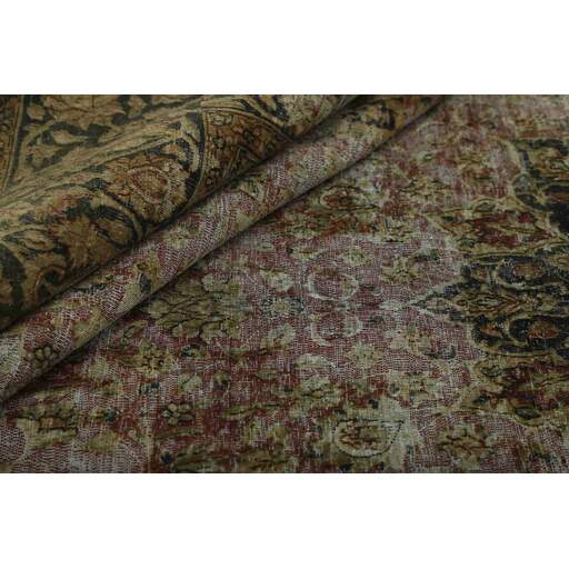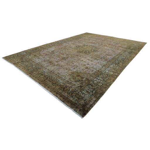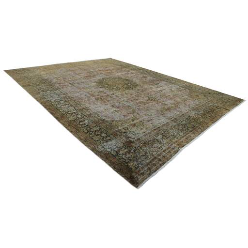 Les tapis Vintage Kerman sont des tapis anciens noués à la main d'origine persane. Cette collection Vintage Kerman se compose d'un tapis entier qui a été délavé à la pierre et recoloré dans des couleurs claires, foncées ou vives, l'ancien motif étant à peine visible. Les tapis sont de très haute qualité et sont disponibles en grandes tailles. Avec la collection Vintage Kerman, vous n'achetez pas seulement un tapis ; vous ornez votre maison d'une pièce unique d'artisanat persan ancien.