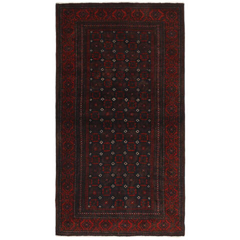 Les tribus baloutches sont réparties sur une vaste zone dans l'est de l'Iran et constituent une part importante de la population du Pakistan et de l'Afghanistan. Bien que le Baloutchistan soit situé en partie au Pakistan et en partie dans la province iranienne du Sistan au sud-est, les tapis baloutches ne sont pas fabriqués au Baloutchistan mais dans la province du Khorasan au nord-est, où une douzaine de tribus fabriquent des tapis noués. Les tapis sont vendus à Mashad, Turbat-e-Haidari, Naishapur Birjand et Zabul. Comme tous les tapis nomades, les tapis baloutches sont petits, la plupart d'entre eux ayant la taille d'un tapis de prière. Les tapis de prière sont en fait très courants ; les arcs sont toujours géométriques, comme si deux rectangles avaient été coupés aux coins d'une extrémité. Les tribus kurdes et turkmènes, dont les territoires bordent la région, influencent d'autres motifs. Parfois, les motifs se composent également d'oiseaux et de personnages. Les couleurs les plus courantes sont le rouge foncé, le bleu foncé et le blanc. Les tapis sont généralement 100 % laine. Le nouage est généralement très fin et les kilims en brocart sont souvent brodés à une extrémité.