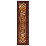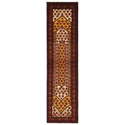 Les tribus baloutches sont réparties sur une vaste zone dans l'est de l'Iran et constituent une part importante de la population du Pakistan et de l'Afghanistan. Bien que le Baloutchistan soit situé en partie au Pakistan et en partie dans la province iranienne du Sistan au sud-est, les tapis baloutches ne sont pas fabriqués au Baloutchistan mais dans la province du Khorasan au nord-est, où une douzaine de tribus fabriquent des tapis noués. Les tapis sont vendus à Mashad, Turbat-e-Haidari, Naishapur Birjand et Zabul. Comme tous les tapis nomades, les tapis baloutches sont petits, la plupart d'entre eux ayant la taille d'un tapis de prière. Les tapis de prière sont en fait très courants ; les arcs sont toujours géométriques, comme si deux rectangles avaient été coupés aux coins d'une extrémité. Les tribus kurdes et turkmènes, dont les territoires bordent la région, influencent d'autres motifs. Parfois, les motifs se composent également d'oiseaux et de personnages. Les couleurs les plus courantes sont le rouge foncé, le bleu foncé et le blanc. Les tapis sont généralement 100 % laine. Le nouage est généralement très fin et les kilims en brocart sont souvent brodés à une extrémité.