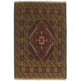 Les tribus baloutches sont réparties sur une vaste zone dans l'est de l'Iran et constituent une part importante de la population du Pakistan et de l'Afghanistan. Bien que le Baloutchistan soit situé en partie au Pakistan et en partie dans la province iranienne du Sistan au sud-est, les tapis baloutches ne sont pas fabriqués au Baloutchistan mais dans la province du Khorasan au nord-est, où une douzaine de tribus fabriquent des tapis noués. Les tapis sont vendus à Mashad, Turbat-e-Haidari, Naishapur Birjand et Zabul. Comme tous les tapis nomades, les tapis baloutches sont petits, la plupart d'entre eux ayant la taille d'un tapis de prière. Les tapis de prière sont en fait très courants ; les arcs sont toujours géométriques, comme si deux rectangles avaient été coupés aux coins d'une extrémité. Les tribus kurdes et turkmènes, dont les territoires bordent la région, influencent d'autres motifs. Parfois, les motifs se composent également d'oiseaux et de personnages. Les couleurs les plus courantes sont le rouge foncé, le bleu foncé et le blanc. Les tapis sont généralement 100 % laine. Le nouage est généralement très fin et les kilims en brocart sont souvent brodés à une extrémité.