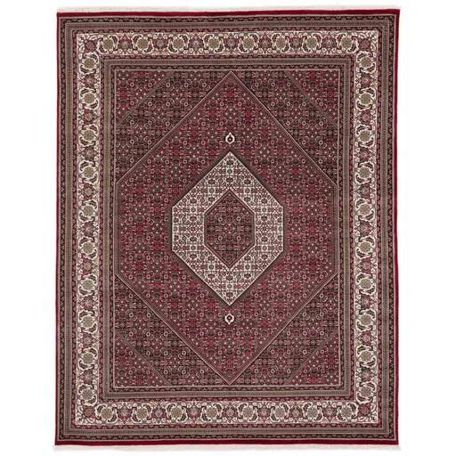 Les tapis Bidjar Royals sont des tapis classiques noués à la main originaires d'Inde, dont les motifs s'inspirent des tapis persans Bidjar originaux. Les couleurs sont rouges et les motifs sont hexagonaux, souvent avec un grand médaillon central entouré de deux autres hexagones. Les garnitures sont décorées de rosaces et de fleurs. Il existe une certaine différence de qualité entre les Royals et les Indis, mais elle n'est pas facilement observable.