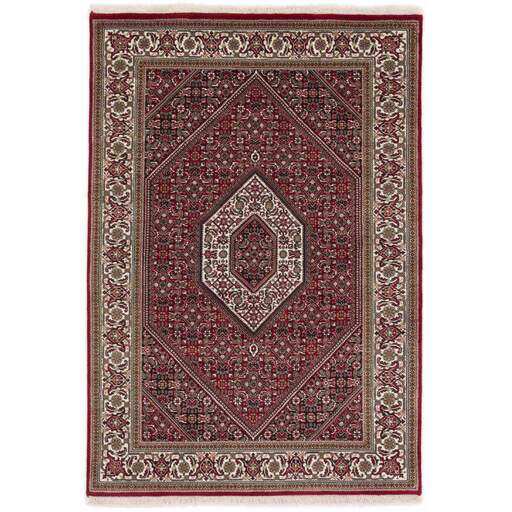 Les tapis Bidjar Royals sont des tapis classiques noués à la main originaires d'Inde, dont les motifs s'inspirent des tapis persans Bidjar originaux. Les couleurs sont rouges et les motifs sont hexagonaux, souvent avec un grand médaillon central entouré de deux autres hexagones. Les garnitures sont décorées de rosaces et de fleurs. Il existe une certaine différence de qualité entre les Royals et les Indis, mais elle n'est pas facilement observable.