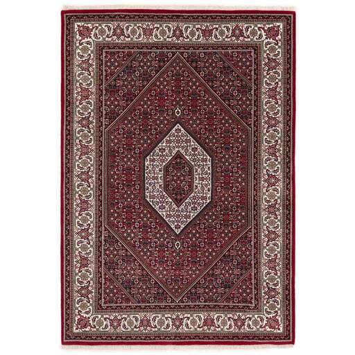 Les tapis Bidjar Royals sont des tapis classiques noués à la main originaires d'Inde, dont les motifs s'inspirent des tapis persans Bidjar originaux. Les couleurs sont rouges et les motifs sont hexagonaux, souvent avec un grand médaillon central entouré de deux autres hexagones. Les garnitures sont décorées de rosaces et de fleurs. Il existe une certaine différence de qualité entre les Royals et les Indis, mais elle n'est pas facilement observable.