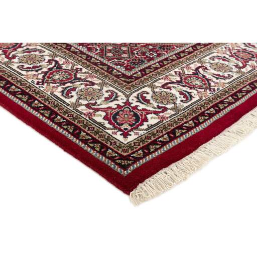 Les tapis Bidjar Royals sont des tapis classiques noués à la main originaires d'Inde, dont les motifs s'inspirent des tapis persans Bidjar originaux. Les couleurs sont rouges et les motifs sont hexagonaux, souvent avec un grand médaillon central entouré de deux autres hexagones. Les garnitures sont décorées de rosaces et de fleurs. Il existe une certaine différence de qualité entre les Royals et les Indis, mais elle n'est pas facilement observable.