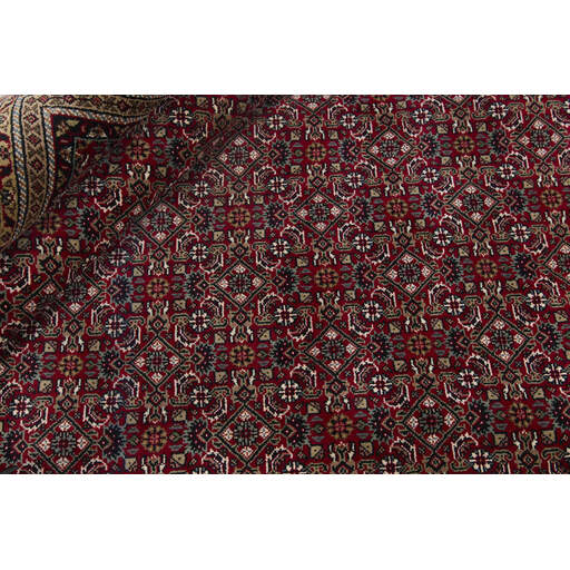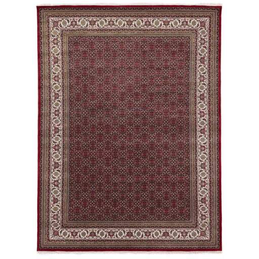 Les tapis Bidjar Royals sont des tapis classiques noués à la main originaires d'Inde, dont les motifs s'inspirent des tapis persans Bidjar originaux. Les couleurs sont rouges et les motifs sont hexagonaux, souvent avec un grand médaillon central entouré de deux autres hexagones. Les garnitures sont décorées de rosaces et de fleurs. Il existe une certaine différence de qualité entre les Royals et les Indis, mais elle n'est pas facilement observable.