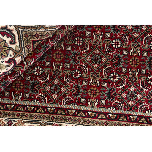 Les tapis Bidjar Royals sont des tapis classiques noués à la main originaires d'Inde, dont les motifs s'inspirent des tapis persans Bidjar originaux. Les couleurs sont rouges et les motifs sont hexagonaux, souvent avec un grand médaillon central entouré de deux autres hexagones. Les garnitures sont décorées de rosaces et de fleurs. Il existe une certaine différence de qualité entre les Royals et les Indis, mais elle n'est pas facilement observable.