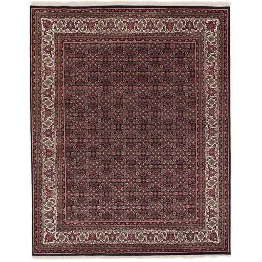 Les tapis Bidjar Royals sont des tapis classiques noués à la main originaires d'Inde, dont les motifs s'inspirent des tapis persans Bidjar originaux. Les couleurs sont rouges et les motifs sont hexagonaux, souvent avec un grand médaillon central entouré de deux autres hexagones. Les garnitures sont décorées de rosaces et de fleurs. Il existe une certaine différence de qualité entre les Royals et les Indis, mais elle n'est pas facilement observable.
