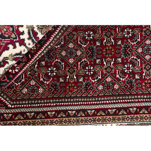 Les tapis Bidjar Royals sont des tapis classiques noués à la main originaires d'Inde, dont les motifs s'inspirent des tapis persans Bidjar originaux. Les couleurs sont rouges et les motifs sont hexagonaux, souvent avec un grand médaillon central entouré de deux autres hexagones. Les garnitures sont décorées de rosaces et de fleurs. Il existe une certaine différence de qualité entre les Royals et les Indis, mais elle n'est pas facilement observable.