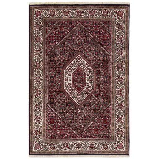 Les tapis Bidjar Royals sont des tapis classiques noués à la main originaires d'Inde, dont les motifs s'inspirent des tapis persans Bidjar originaux. Les couleurs sont rouges et les motifs sont hexagonaux, souvent avec un grand médaillon central entouré de deux autres hexagones. Les garnitures sont décorées de rosaces et de fleurs. Il existe une certaine différence de qualité entre les Royals et les Indis, mais elle n'est pas facilement observable.