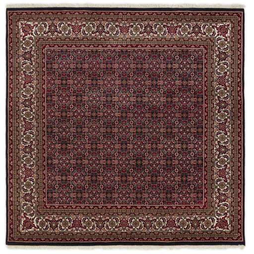 Les tapis Bidjar Royals sont des tapis classiques noués à la main originaires d'Inde, dont les motifs s'inspirent des tapis persans Bidjar originaux. Les couleurs sont rouges et les motifs sont hexagonaux, souvent avec un grand médaillon central entouré de deux autres hexagones. Les garnitures sont décorées de rosaces et de fleurs. Il existe une certaine différence de qualité entre les Royals et les Indis, mais elle n'est pas facilement observable.