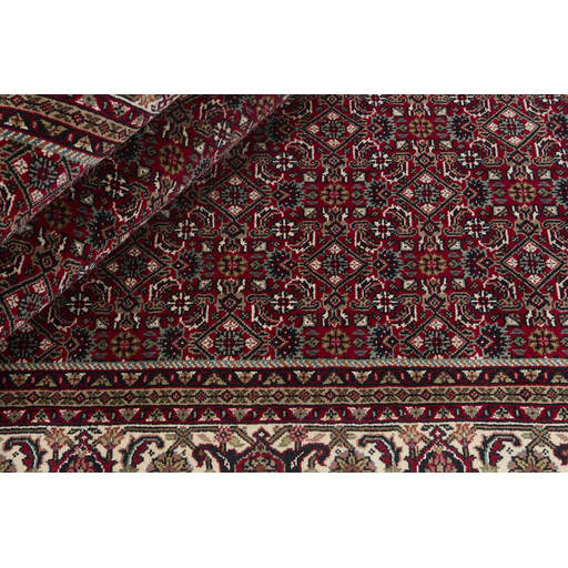 Les tapis Bidjar Royals sont des tapis classiques noués à la main originaires d'Inde, dont les motifs s'inspirent des tapis persans Bidjar originaux. Les couleurs sont rouges et les motifs sont hexagonaux, souvent avec un grand médaillon central entouré de deux autres hexagones. Les garnitures sont décorées de rosaces et de fleurs. Il existe une certaine différence de qualité entre les Royals et les Indis, mais elle n'est pas facilement observable.