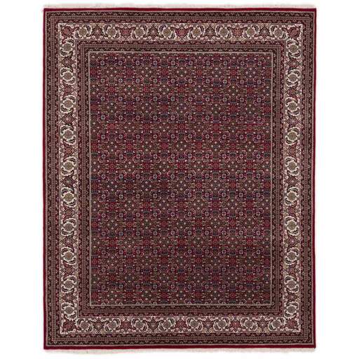 Les tapis Bidjar Royals sont des tapis classiques noués à la main originaires d'Inde, dont les motifs s'inspirent des tapis persans Bidjar originaux. Les couleurs sont rouges et les motifs sont hexagonaux, souvent avec un grand médaillon central entouré de deux autres hexagones. Les garnitures sont décorées de rosaces et de fleurs. Il existe une certaine différence de qualité entre les Royals et les Indis, mais elle n'est pas facilement observable.