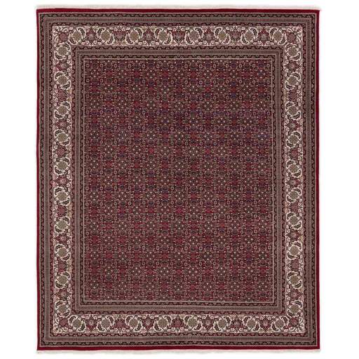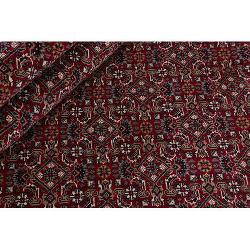 Les tapis Bidjar Royals sont des tapis classiques noués à la main originaires d'Inde, dont les motifs s'inspirent des tapis persans Bidjar originaux. Les couleurs sont rouges et les motifs sont hexagonaux, souvent avec un grand médaillon central entouré de deux autres hexagones. Les garnitures sont décorées de rosaces et de fleurs. Il existe une certaine différence de qualité entre les Royals et les Indis, mais elle n'est pas facilement observable.
