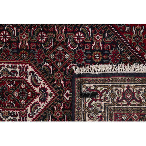 Les tapis Bidjar Royals sont des tapis classiques noués à la main originaires d'Inde, dont les motifs s'inspirent des tapis persans Bidjar originaux. Les couleurs sont rouges et les motifs sont hexagonaux, souvent avec un grand médaillon central entouré de deux autres hexagones. Les garnitures sont décorées de rosaces et de fleurs. Il existe une certaine différence de qualité entre les Royals et les Indis, mais elle n'est pas facilement observable.