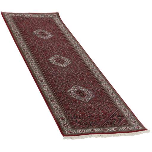 Les tapis Bidjar Royals sont des tapis classiques noués à la main originaires d'Inde, dont les motifs s'inspirent des tapis persans Bidjar originaux. Les couleurs sont rouges et les motifs sont hexagonaux, souvent avec un grand médaillon central entouré de deux autres hexagones. Les garnitures sont décorées de rosaces et de fleurs. Il existe une certaine différence de qualité entre les Royals et les Indis, mais elle n'est pas facilement observable.
