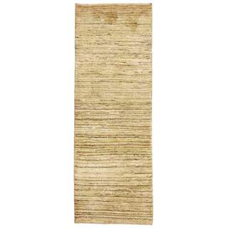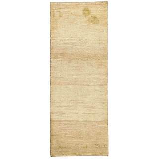 Gabbeh is the name of a special rug woven by the Lori and Kashghai tribes. It is coarsely woven, made from hand spun wool and dyed in plant-based dyes. Gabbeh has light colours and a thick pile. Most Gabbeh rugs are sold in the bazaars of Shiraz. Typically, the warp, weft, and pile are all made of handspun wool, and have no fringes. The ends are Kelims that have been bent and sewed up. The patterns are most often geometrical, although the Kashghai Gabbeh sometimes display motifs in their finer rugs. Sometimes figure patterns can be seen; goats, camels, and lions, covered by small geometrical motifs, and copies of reliefs from Persepolis (the main city of the Achaemenid dynasty, near Shiraz). Typical colours are beige, red, orange, and dark blue. Gabbeh rugs are made by Nomad tribes and dwellers in the south of Iran. The Khasqai and Lori tribes are the best known producers, and as far as patterns and colour combinations are concerned, Gabbeh rugs are undoubtedly the most unpredictable of Pers ian rugs. The Nomad style is simple and spartan - qualities which make these rugs so varied and exiting. The attractive, pure colours and simple figures of the Gabbeh rug match the style of the modern home.