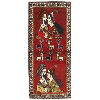 The Kashghai are Iran’s largest and most well known tribe. They speak a Turkish dialect, and are believed to have come from the Caucasus in the 18th century to their current areas, around Shiraz in the Fars Province of southern Iran. Their belligerent attitude has lead to conflicts with changing governments, as well as other tribes in the area. Both their rugs and the women’s clothing clearly show their skills and love of colours. Many subtribes exist, the most important ones being the Bilvedi, the Shishbouki, the Darashuri, and the Kashkuli. The Kashghai knot numerous types of rugs, but a characteristic product can be distinguished by its wool construction, the sturdy ridges on the back, its strong, deep colours (especially the red), as well as by the use of traditional motifs such as Harshang or the crab. The patterns are geometrical, typically with three or five medallions along the centre of the rug or in the middle and corners. The entire field is usually covered in small geometrical motifs. Persepolis motifs can often be found in the rugs. The Kashghai are also famous for their older crafts, such as horse blankets, saddlebags, and rope. The products of other tribes, such as the Kamseh and the Lori, are often mistaken for those of the Kashghai.