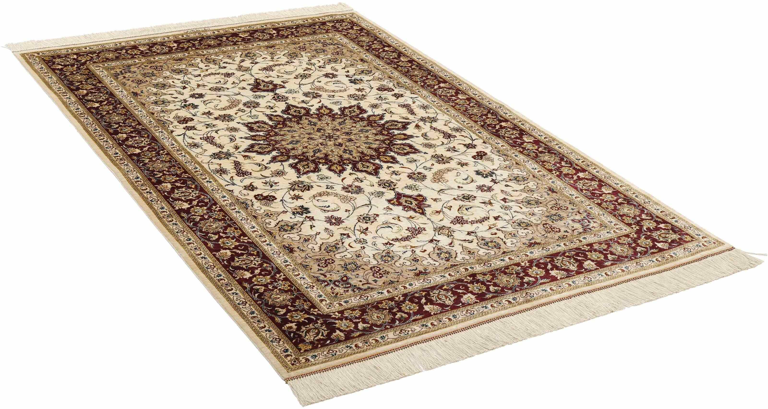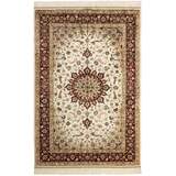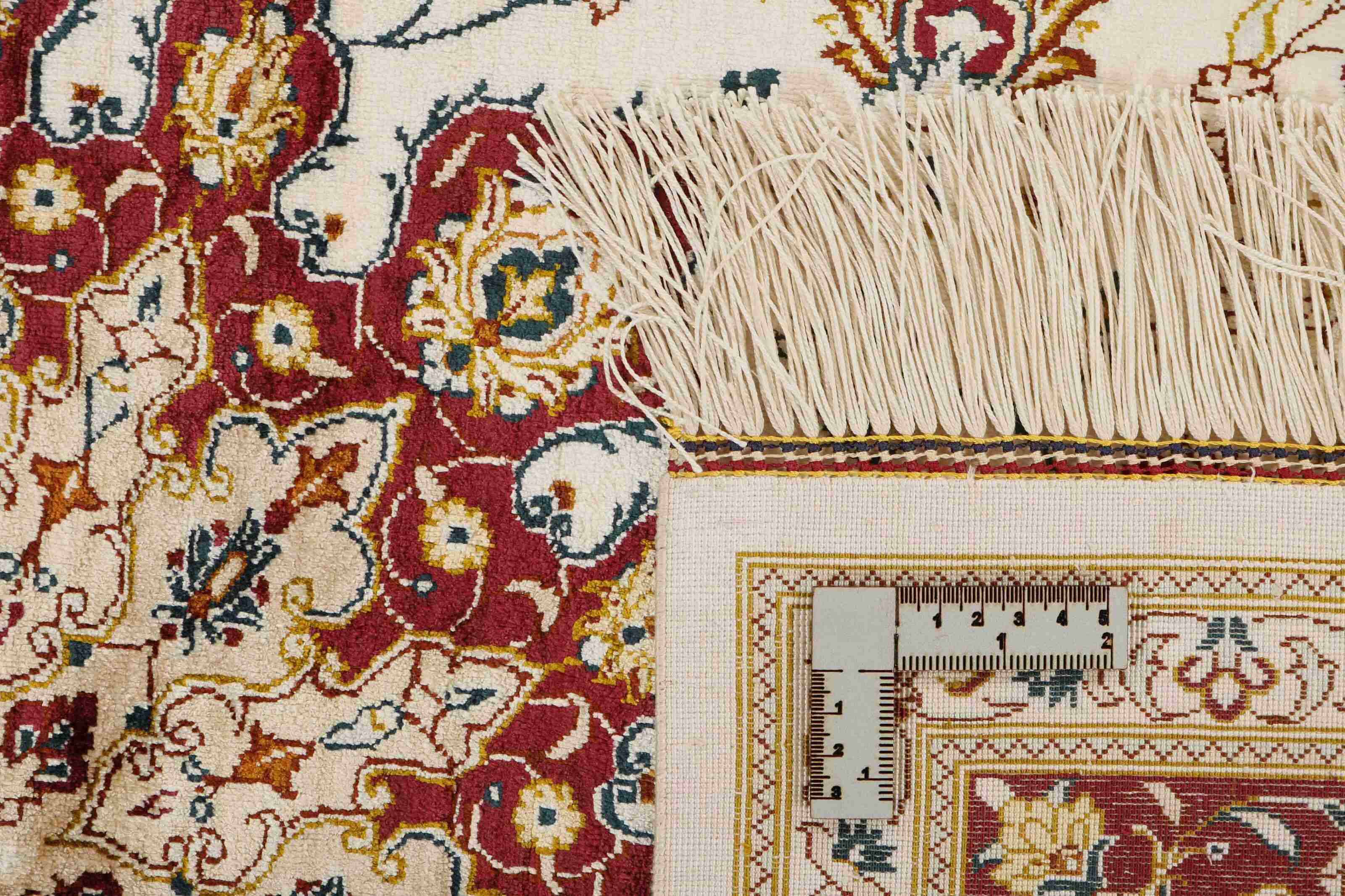 Ghom, ville d'un demi-million d'habitants, se trouve au sud de Téhéran, sur la route menant à la province de Markazi (centre). L'industrie du tapis de la ville ne s'est développée qu'après 1930, mais elle a acquis une bonne réputation. Comme il n'existe aucune tradition ou précédent sur lequel s'appuyer, les tisserands puisent leurs motifs dans différentes sources, d'où ils les transfèrent et les combinent. Certains motifs sont entièrement copiés et il n'est pas rare de voir des copies de tapis Joshqan ou Sirjan fabriquées à Ghom, mais elles sont beaucoup plus fines que les originales et réalisées avec un velours de soie. En outre, plusieurs variantes de médaillons et de motifs uniformes sont réalisées. Le velours est soit en soie avec chaîne et trame de soie, soit en laine, ou en laine mélangée à de la soie, avec une base en coton. Le nouage est généralement fin. Une large gamme de couleurs est utilisée, parfois dans des combinaisons qui semblent étranges aux Occidentaux. Un rose et un vert puissants sont particulièrement caractéristiques des tapis de soie.