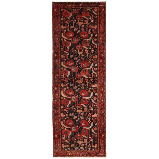Ce tapis provient du district de Hamadan, un important centre de commerce de tapis et la zone de production de tapis la plus productive d'Iran. Hamadan est une grande ville comptant des centaines de milliers d'habitants. Comme Ekbatan, c'était la principale ville des rois achéménides. Elle abrite une population juive indigène et de nombreux monuments, dont les plus importants sont les tombeaux d'Esther et de Mordicai (au cœur des pèlerins juifs) et le tombeau d'Avicenne. Hamadan est une capitale provinciale. Deux types de tapis sont noués. L'un est le soi-disant « tapis de ville », également connu sous le nom de Shahrbaff. La production est moderne et largement contrôlée par l'État. La production villageoise, cependant, est beaucoup plus importante ; Hamadan est une ville de marché pour de nombreux villages producteurs de tapis qui ont chacun leur propre motif. Les plus importants sont Borchalu, Tuserkman, Memraban, Khamseh, Begardeh, Enjilas, Hosseinabad et Zandjan. Il existe une grande variété de motifs mais la qualité est très constante. Les couleurs sont fortes et souvent des couleurs végétales. Les motifs sont audacieux, bien qu'aléatoires, et Hosseinabad et Enjilas en particulier sont connus pour leurs motifs traversants. Les tapis ne mesurent généralement pas plus de 3 mètres sur 2.