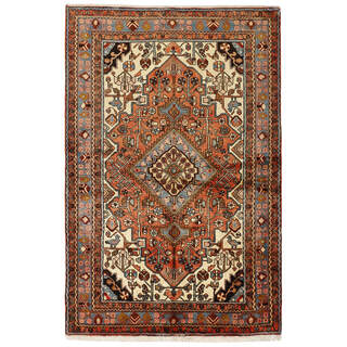 Nahavand is a city of about 200.000 people, situated west of Malayer, in the southern part of the Hamadan province. The rug production is concentrated in the city itself and the surrounding villages, such as Ushvand. The rugs share many characteristics with Hamadan rugs; they have simple warps and wefts, with a wool pile and cotton warp and weft. The patterns can best be described as rural interpretations of classical patterns, with a central medallion and corners. They have warm colours, different nuances of red, as well as brown, blue, and green.