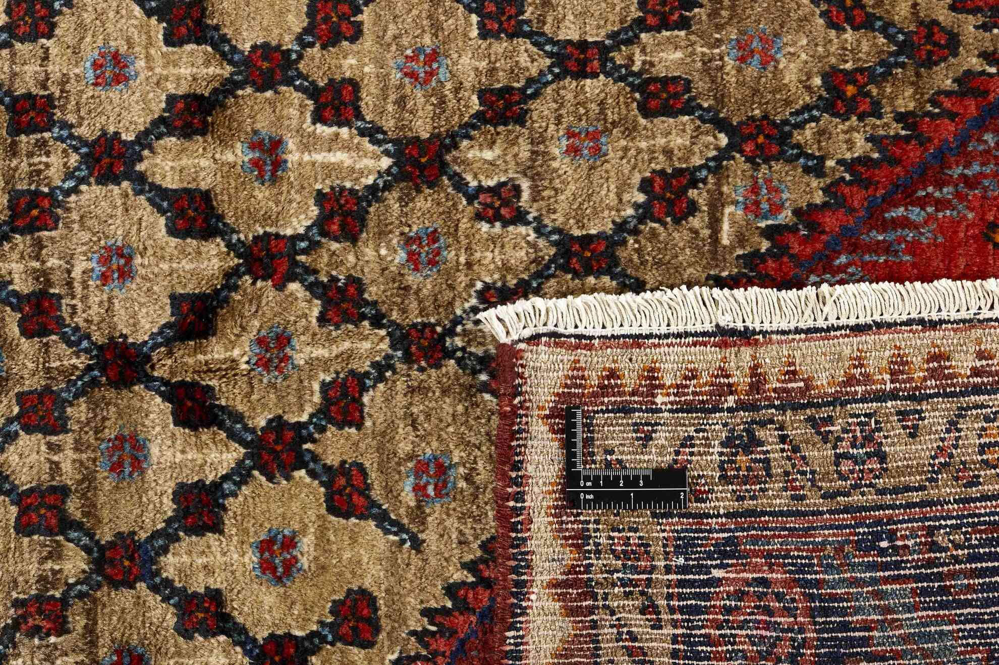 Ce tapis provient du district de Hamadan, un important centre de commerce de tapis et la zone de production de tapis la plus productive d'Iran. Hamadan est une grande ville comptant des centaines de milliers d'habitants. Comme Ekbatan, c'était la principale ville des rois achéménides. Elle abrite une population juive indigène et de nombreux monuments, dont les plus importants sont les tombeaux d'Esther et de Mordicai (au cœur des pèlerins juifs) et le tombeau d'Avicenne. Hamadan est une capitale provinciale. Deux types de tapis sont noués. L'un est le soi-disant « tapis de ville », également connu sous le nom de Shahrbaff. La production est moderne et largement contrôlée par l'État. La production villageoise, cependant, est beaucoup plus importante ; Hamadan est une ville de marché pour de nombreux villages producteurs de tapis qui ont chacun leur propre motif. Les plus importants sont Borchalu, Tuserkman, Memraban, Khamseh, Begardeh, Enjilas, Hosseinabad et Zandjan. Il existe une grande variété de motifs mais la qualité est très constante. Les couleurs sont fortes et souvent des couleurs végétales. Les motifs sont audacieux, bien qu'aléatoires, et Hosseinabad et Enjilas en particulier sont connus pour leurs motifs traversants. Les tapis ne mesurent généralement pas plus de 3 mètres sur 2.