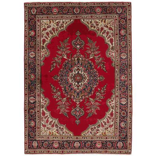 Tabriz est l'une des villes les plus importantes d'Iran. Elle compte 1,5 million d'habitants et est la capitale de la province de l'Azerbaïdjan oriental. Étant l'une des plus grandes régions productrices de tapis de Perse, les tapis de Tabriz sont exportés dans toutes les qualités, du plus simple au plus luxueux. Les meilleures qualités sont divisées en deux catégories principales : le Tabriz Mahi, également connu sous le nom de « motif de poisson de Tabriz » (le motif en forme de feuille du tapis est appelé Mahi, ce qui signifie « poisson »), et le Tabriz Nagsheh, qui signifie motif. Dans ce contexte, il fait référence aux motifs et symboles figuratifs de Keshan et d'Ispahan, qui ont inspiré le tapis Tabriz Nagsheh. Les noueurs sont incroyablement habiles et ils ont inventé un type spécial de crochet, qu'ils peuvent utiliser à la place de leurs doigts pour nouer les nœuds. La chaîne et la trame sont en coton, et le velours est en laine, souvent avec de la soie tissée dans les qualités les plus fines. Les couleurs des meilleurs tapis sont fines et raffinées. Les qualités les plus brutes ont des couleurs vives et sont rarement exportées. Les tapis de Tabriz sont souvent numérotés, comme Tabriz 50, ce qui est une indication de qualité. Le Tabriz 50 a 500 000 nœuds par m2. Les tapis de Tabriz sont considérés comme étant durables et de très haute qualité.
