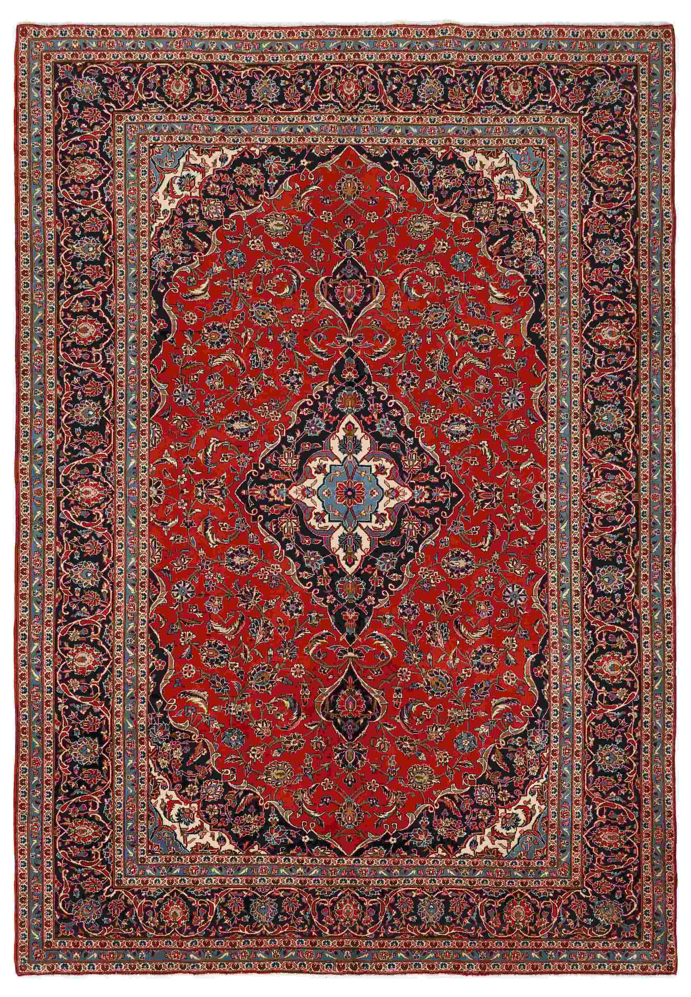 Keshan a toujours été célèbre pour son artisanat. Les villages se situent sur la route principale entre Ghom et Ispahan, dans le centre de l'Iran. À l'est, la région borde le plus grand désert d'Iran. Malgré le déclin de cet artisanat particulier au cours du XXe siècle, de nombreux tapis Keshan magnifiques sont toujours fabriqués conformément aux traditions des anciens maîtres, par exemple décorés de magnifiques motifs en médaillon ou de tapisseries représentant des motifs humains et animaux. Les motifs sont le plus souvent tissés autour d'un médaillon au centre du tapis, dont certains se répètent dans les coins. Les autres champs sont densément décorés de fleurs et de vignes réalistes. La bordure principale présente souvent le motif « Herati » (une feuille arquée), tandis que les bordures secondaires présentent des rosettes. Le rouge brique et le bleu foncé sont les couleurs de base les plus courantes. Keshan est une ville d'environ 300 000 habitants, située dans la province d'Ispahan, dans le centre de l'Iran. Elle est plutôt basse et il fait très chaud en été. Traditionnellement, les gens ont cherché à remédier à ce problème en construisant les maisons dans le sol. Keshan produit des tapis en laine et en soie. Les premiers ont une chaîne et une trame en coton, la trame étant bleue. Plusieurs qualités sont produites, mais la plupart des tapis Keshan sont très finement noués et entièrement couvrants. La forme d'un médaillon Keshan est assez particulière ; elle est faite d'une alternance de lignes courbes et d'angles droits. Les couleurs les plus courantes sont un champ rouge et un médaillon bleu, avec des détails secondaires dans d'autres couleurs. Les garnitures d'un tapis Keshan sont également spéciales ; la garniture principale est normalement entourée de rayures qui forment un motif géométrique, généralement de petits triangles bleus et rouges. Les tapis Keshan existent dans toutes les tailles. La ville de Natanez, au sud-est du pays, a donné son nom à des tapis d'image réalisés avec le même nouage que les Keshan.