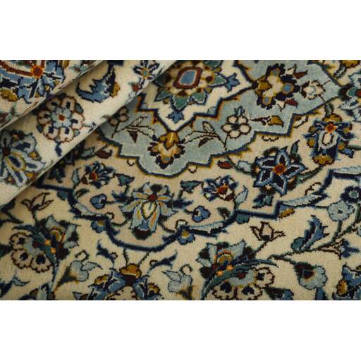 Keshan a toujours été célèbre pour son artisanat. Les villages se situent sur la route principale entre Ghom et Ispahan, dans le centre de l'Iran. À l'est, la région borde le plus grand désert d'Iran. Malgré le déclin de cet artisanat particulier au cours du XXe siècle, de nombreux tapis Keshan magnifiques sont toujours fabriqués conformément aux traditions des anciens maîtres, par exemple décorés de magnifiques motifs en médaillon ou de tapisseries représentant des motifs humains et animaux. Les motifs sont le plus souvent tissés autour d'un médaillon au centre du tapis, dont certains se répètent dans les coins. Les autres champs sont densément décorés de fleurs et de vignes réalistes. La bordure principale présente souvent le motif « Herati » (une feuille arquée), tandis que les bordures secondaires présentent des rosettes. Le rouge brique et le bleu foncé sont les couleurs de base les plus courantes. Keshan est une ville d'environ 300 000 habitants, située dans la province d'Ispahan, dans le centre de l'Iran. Elle est plutôt basse et il fait très chaud en été. Traditionnellement, les gens ont cherché à remédier à ce problème en construisant les maisons dans le sol. Keshan produit des tapis en laine et en soie. Les premiers ont une chaîne et une trame en coton, la trame étant bleue. Plusieurs qualités sont produites, mais la plupart des tapis Keshan sont très finement noués et entièrement couvrants. La forme d'un médaillon Keshan est assez particulière ; elle est faite d'une alternance de lignes courbes et d'angles droits. Les couleurs les plus courantes sont un champ rouge et un médaillon bleu, avec des détails secondaires dans d'autres couleurs. Les garnitures d'un tapis Keshan sont également spéciales ; la garniture principale est normalement entourée de rayures qui forment un motif géométrique, généralement de petits triangles bleus et rouges. Les tapis Keshan existent dans toutes les tailles. La ville de Natanez, au sud-est du pays, a donné son nom à des tapis d'image réalisés avec le même nouage que les Keshan.