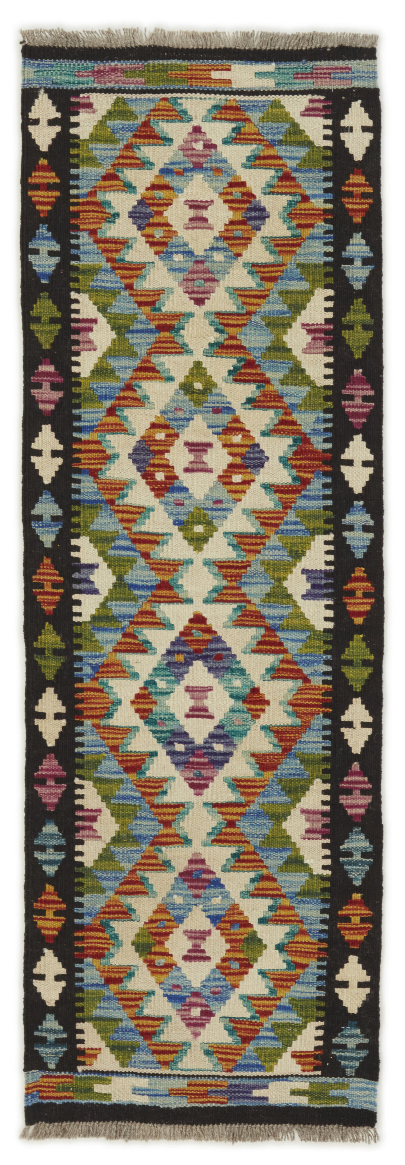 Les tapis kelim afghans sont tissés à la main par les Turkmènes du nord de l'Afghanistan. Kelim est le nom d'un tissage persan courant, mais aussi de la technologie utilisée dans sa production. Les kelims sont principalement fabriqués par des nomades et sont des tapis sans poils, qui sont également utilisés pour les sacs, comme décoration murale ou comme rideaux pour les tentes. Une gamme de couleurs naturelles avec des symboles géométriques et des octogones est utilisée.