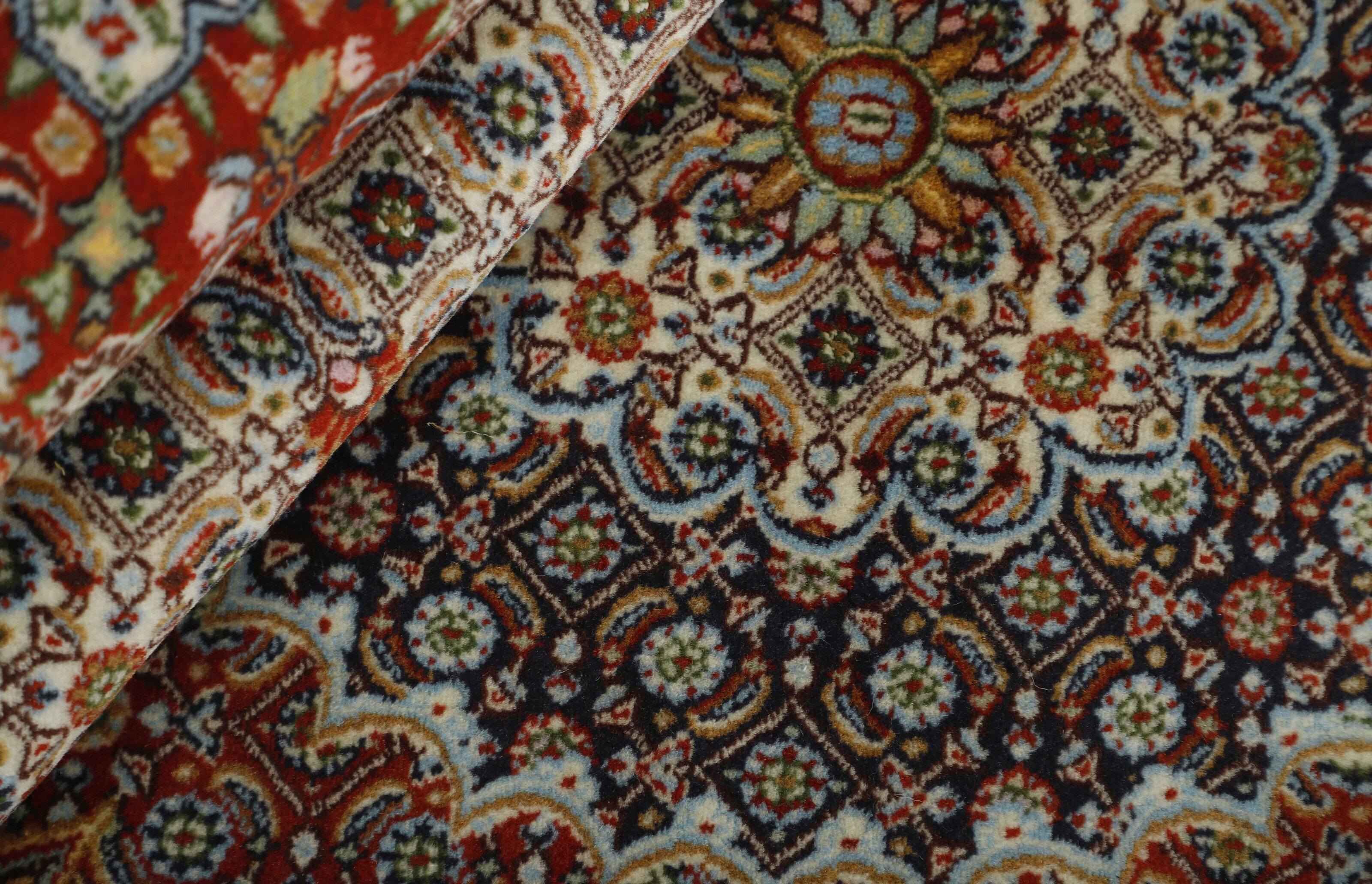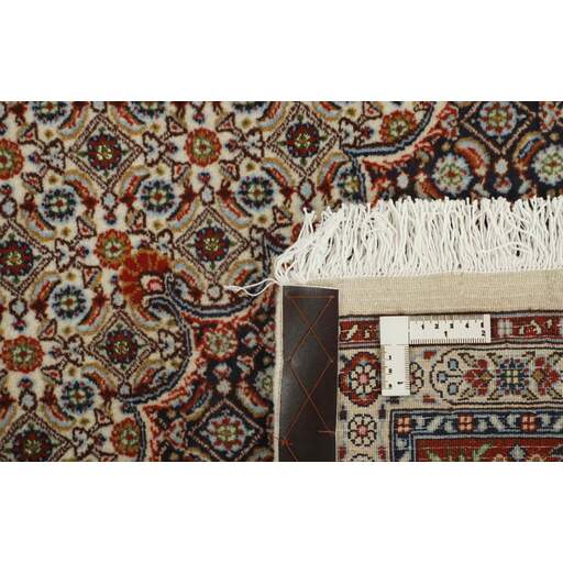 Moud is een klein stadje ten zuiden van Mashad, in de provincie Khorrasan. Tapijten uit dit gebied worden gekenmerkt door homogeniteit in patronen en kwaliteit. De schering en inslag zijn van katoen en de pool is van wol. De versieringen zijn een versie van de traditionele Perzische schildpadversiering. De tapijten worden in alle maten geproduceerd. Moud-tapijten worden vaak gekopieerd in India, vanwege hun opmerkelijke homogeniteit. De karakteristieke Moud-ontwerpen behoren tot de meest uniforme, gelijkmatig geknoopte en gemakkelijk herkenbare ontwerpen van de provincie Khorrasan. Moud Mahi worden gemaakt in een beige, lichtrode of blauwe tint, met all-over Mahi-patronen of met een stervormig medaillon. Mahi betekent vis en het Mahi-patroon is het meest gebruikte patroon in echte Perzische tapijten. Als je er goed naar kijkt, zie je een vijver omringd door vier vissen.