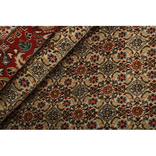 Moud is een klein stadje ten zuiden van Mashad, in de provincie Khorrasan. Tapijten uit dit gebied worden gekenmerkt door homogeniteit in patronen en kwaliteit. De schering en inslag zijn van katoen en de pool is van wol. De versieringen zijn een versie van de traditionele Perzische schildpadversiering. De tapijten worden in alle maten geproduceerd. Moud-tapijten worden vaak gekopieerd in India, vanwege hun opmerkelijke homogeniteit. De karakteristieke Moud-ontwerpen behoren tot de meest uniforme, gelijkmatig geknoopte en gemakkelijk herkenbare ontwerpen van de provincie Khorrasan. Moud Mahi worden gemaakt in een beige, lichtrode of blauwe tint, met all-over Mahi-patronen of met een stervormig medaillon. Mahi betekent vis en het Mahi-patroon is het meest gebruikte patroon in echte Perzische tapijten. Als je er goed naar kijkt, zie je een vijver omringd door vier vissen.