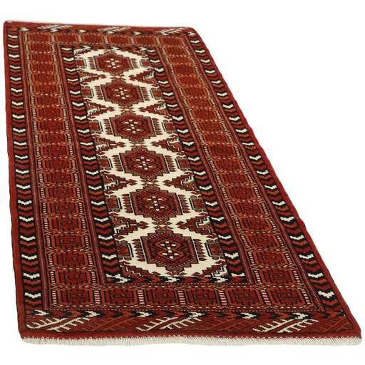 De Turkmenen zijn een zeer belangrijke stam, die voornamelijk in Afghanistan en de voormalige Sovjetrepubliek Turkmenistan woont. De Iraanse bevolking is beperkt tot een gebied rond Gonbad-e-Kavus (500.000 inwoners) in de provincie Mazandran. De Iraanse Turkmenen behoren tot drie stammen; de Yomut, de Tekke en de Atabat. De eerste twee zijn het meest beroemd om hun tapijten. Oorspronkelijk waren het nomadische stammen, maar de meeste Iraanse Turkmenen zijn nu gevestigd, hoewel ze vaak een traditionele ronde tent hebben op een plein in de buurt van hun moderne bakstenen huizen. Turkmeense tapijten zijn traditioneel gemaakt van wol en hebben een beperkt kleurenpalet; rood, zwart en ivoor, soms gemengd met andere kleuren en zijde. De typische patronen zijn geometrische bloemen (güls) en achthoekige patronen met variaties per stam. Volgens de traditie worden de tapijten in verschillende maten gemaakt, afhankelijk van waar ze in de tent worden gebruikt; zoals deurgordijnen, tassenhoezen, etc. Soms worden er voor stamhoofden hele grote tapijten op bestelling gemaakt.