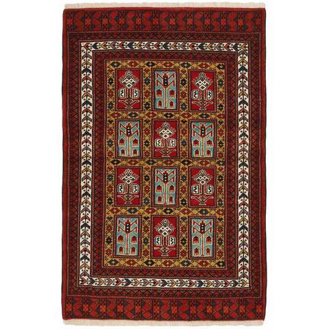 De Turkmenen zijn een zeer belangrijke stam, die voornamelijk in Afghanistan en de voormalige Sovjetrepubliek Turkmenistan woont. De Iraanse bevolking is beperkt tot een gebied rond Gonbad-e-Kavus (500.000 inwoners) in de provincie Mazandran. De Iraanse Turkmenen behoren tot drie stammen; de Yomut, de Tekke en de Atabat. De eerste twee zijn het meest beroemd om hun tapijten. Oorspronkelijk waren het nomadische stammen, maar de meeste Iraanse Turkmenen zijn nu gevestigd, hoewel ze vaak een traditionele ronde tent hebben op een plein in de buurt van hun moderne bakstenen huizen. Turkmeense tapijten zijn traditioneel gemaakt van wol en hebben een beperkt kleurenpalet; rood, zwart en ivoor, soms gemengd met andere kleuren en zijde. De typische patronen zijn geometrische bloemen (güls) en achthoekige patronen met variaties per stam. Volgens de traditie worden de tapijten in verschillende maten gemaakt, afhankelijk van waar ze in de tent worden gebruikt; zoals deurgordijnen, tassenhoezen, etc. Soms worden er voor stamhoofden hele grote tapijten op bestelling gemaakt.