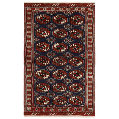 De Turkmenen zijn een zeer belangrijke stam, die voornamelijk in Afghanistan en de voormalige Sovjetrepubliek Turkmenistan woont. De Iraanse bevolking is beperkt tot een gebied rond Gonbad-e-Kavus (500.000 inwoners) in de provincie Mazandran. De Iraanse Turkmenen behoren tot drie stammen; de Yomut, de Tekke en de Atabat. De eerste twee zijn het meest beroemd om hun tapijten. Oorspronkelijk waren het nomadische stammen, maar de meeste Iraanse Turkmenen zijn nu gevestigd, hoewel ze vaak een traditionele ronde tent hebben op een plein in de buurt van hun moderne bakstenen huizen. Turkmeense tapijten zijn traditioneel gemaakt van wol en hebben een beperkt kleurenpalet; rood, zwart en ivoor, soms gemengd met andere kleuren en zijde. De typische patronen zijn geometrische bloemen (güls) en achthoekige patronen met variaties per stam. Volgens de traditie worden de tapijten in verschillende maten gemaakt, afhankelijk van waar ze in de tent worden gebruikt; zoals deurgordijnen, tassenhoezen, etc. Soms worden er voor stamhoofden hele grote tapijten op bestelling gemaakt.