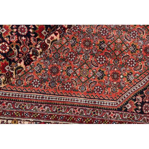 Bidjar is een stad met ongeveer 50.000 inwoners in de noordwestelijke provincie Koerdistan. Het ligt in een vruchtbare vallei, omringd door dorre bergen, en er zijn geen belangrijke monumenten. De stad dient voornamelijk als marktcentrum voor de omliggende dorpen. De recente geschiedenis is dramatisch, aangezien de stad eerst door de Russen en vervolgens door de Turken werd bezet tijdens de Eerste Wereldoorlog, wat leidde tot een hongersnood die de bevolking aanzienlijk deed afnemen. Deze gebeurtenissen worden weerspiegeld in de tapijtproductie van de stad. Voor de Eerste Wereldoorlog werden de tapijten grof maar stevig geknoopt, met wollen schering en inslag. Later werden ze fijner en hadden ze katoenen bases. De Bidjar-patronen zijn vaak Herati, maar soms is een Mahi-patroon te zien. De kleuren zijn meestal helderrood met een lichte rand. De Bidjar-tapijten zijn zo stevig geknoopt dat u het risico loopt de knopen te breken als u ze samenvouwt met de pool naar binnen. Bij het vouwen van Bidjar-tapijten gebeurt dit daarom altijd met de pool naar buiten. Je voelt duidelijk dat er veel meer wol in een Bidjar-kleed zit dan in de meeste andere kleden. Ze voelen een stuk zwaarder aan en ze zijn minder makkelijk te verplaatsen als ze op de grond liggen.