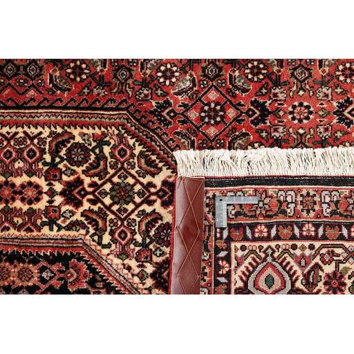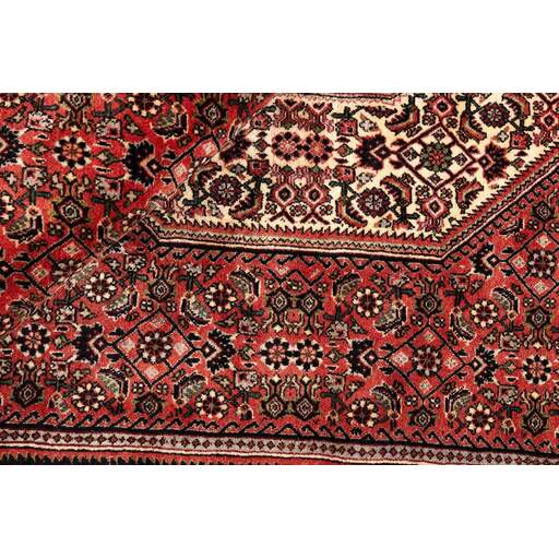 Bidjar is een stad met ongeveer 50.000 inwoners in de noordwestelijke provincie Koerdistan. Het ligt in een vruchtbare vallei, omringd door dorre bergen, en er zijn geen belangrijke monumenten. De stad dient voornamelijk als marktcentrum voor de omliggende dorpen. De recente geschiedenis is dramatisch, aangezien de stad eerst door de Russen en vervolgens door de Turken werd bezet tijdens de Eerste Wereldoorlog, wat leidde tot een hongersnood die de bevolking aanzienlijk deed afnemen. Deze gebeurtenissen worden weerspiegeld in de tapijtproductie van de stad. Voor de Eerste Wereldoorlog werden de tapijten grof maar stevig geknoopt, met wollen schering en inslag. Later werden ze fijner en hadden ze katoenen bases. De Bidjar-patronen zijn vaak Herati, maar soms is een Mahi-patroon te zien. De kleuren zijn meestal helderrood met een lichte rand. De Bidjar-tapijten zijn zo stevig geknoopt dat u het risico loopt de knopen te breken als u ze samenvouwt met de pool naar binnen. Bij het vouwen van Bidjar-tapijten gebeurt dit daarom altijd met de pool naar buiten. Je voelt duidelijk dat er veel meer wol in een Bidjar-kleed zit dan in de meeste andere kleden. Ze voelen een stuk zwaarder aan en ze zijn minder makkelijk te verplaatsen als ze op de grond liggen.
