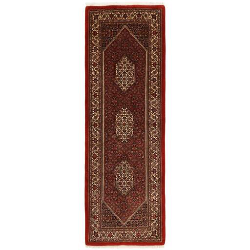 Bidjar is een stad met ongeveer 50.000 inwoners in de noordwestelijke provincie Koerdistan. Het ligt in een vruchtbare vallei, omringd door dorre bergen, en er zijn geen belangrijke monumenten. De stad dient voornamelijk als marktcentrum voor de omliggende dorpen. De recente geschiedenis is dramatisch, aangezien de stad eerst door de Russen en vervolgens door de Turken werd bezet tijdens de Eerste Wereldoorlog, wat leidde tot een hongersnood die de bevolking aanzienlijk deed afnemen. Deze gebeurtenissen worden weerspiegeld in de tapijtproductie van de stad. Voor de Eerste Wereldoorlog werden de tapijten grof maar stevig geknoopt, met wollen schering en inslag. Later werden ze fijner en hadden ze katoenen bases. De Bidjar-patronen zijn vaak Herati, maar soms is een Mahi-patroon te zien. De kleuren zijn meestal helderrood met een lichte rand. De Bidjar-tapijten zijn zo stevig geknoopt dat u het risico loopt de knopen te breken als u ze samenvouwt met de pool naar binnen. Bij het vouwen van Bidjar-tapijten gebeurt dit daarom altijd met de pool naar buiten. Je voelt duidelijk dat er veel meer wol in een Bidjar-kleed zit dan in de meeste andere kleden. Ze voelen een stuk zwaarder aan en ze zijn minder makkelijk te verplaatsen als ze op de grond liggen.