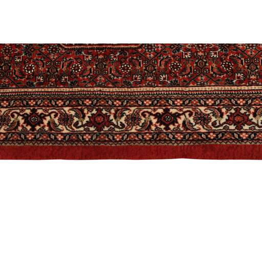 Bidjar is een stad met ongeveer 50.000 inwoners in de noordwestelijke provincie Koerdistan. Het ligt in een vruchtbare vallei, omringd door dorre bergen, en er zijn geen belangrijke monumenten. De stad dient voornamelijk als marktcentrum voor de omliggende dorpen. De recente geschiedenis is dramatisch, aangezien de stad eerst door de Russen en vervolgens door de Turken werd bezet tijdens de Eerste Wereldoorlog, wat leidde tot een hongersnood die de bevolking aanzienlijk deed afnemen. Deze gebeurtenissen worden weerspiegeld in de tapijtproductie van de stad. Voor de Eerste Wereldoorlog werden de tapijten grof maar stevig geknoopt, met wollen schering en inslag. Later werden ze fijner en hadden ze katoenen bases. De Bidjar-patronen zijn vaak Herati, maar soms is een Mahi-patroon te zien. De kleuren zijn meestal helderrood met een lichte rand. De Bidjar-tapijten zijn zo stevig geknoopt dat u het risico loopt de knopen te breken als u ze samenvouwt met de pool naar binnen. Bij het vouwen van Bidjar-tapijten gebeurt dit daarom altijd met de pool naar buiten. Je voelt duidelijk dat er veel meer wol in een Bidjar-kleed zit dan in de meeste andere kleden. Ze voelen een stuk zwaarder aan en ze zijn minder makkelijk te verplaatsen als ze op de grond liggen.