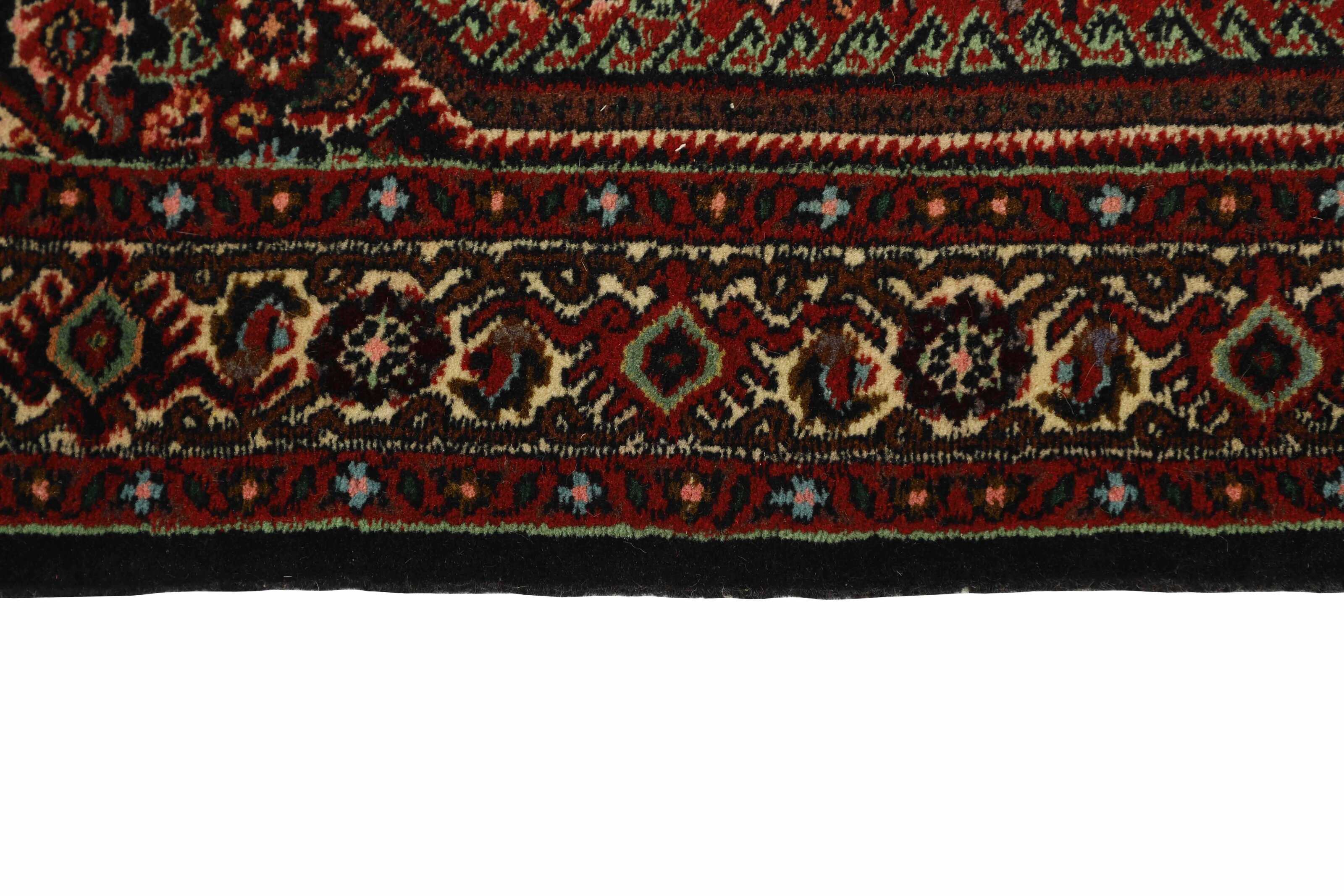 Bidjar is een stad met ongeveer 50.000 inwoners in de noordwestelijke provincie Koerdistan. Het ligt in een vruchtbare vallei, omringd door dorre bergen, en er zijn geen belangrijke monumenten. De stad dient voornamelijk als marktcentrum voor de omliggende dorpen. De recente geschiedenis is dramatisch, aangezien de stad eerst door de Russen en vervolgens door de Turken werd bezet tijdens de Eerste Wereldoorlog, wat leidde tot een hongersnood die de bevolking aanzienlijk deed afnemen. Deze gebeurtenissen worden weerspiegeld in de tapijtproductie van de stad. Voor de Eerste Wereldoorlog werden de tapijten grof maar stevig geknoopt, met wollen schering en inslag. Later werden ze fijner en hadden ze katoenen bases. De Bidjar-patronen zijn vaak Herati, maar soms is een Mahi-patroon te zien. De kleuren zijn meestal helderrood met een lichte rand. De Bidjar-tapijten zijn zo stevig geknoopt dat u het risico loopt de knopen te breken als u ze samenvouwt met de pool naar binnen. Bij het vouwen van Bidjar-tapijten gebeurt dit daarom altijd met de pool naar buiten. Je voelt duidelijk dat er veel meer wol in een Bidjar-kleed zit dan in de meeste andere kleden. Ze voelen een stuk zwaarder aan en ze zijn minder makkelijk te verplaatsen als ze op de grond liggen.